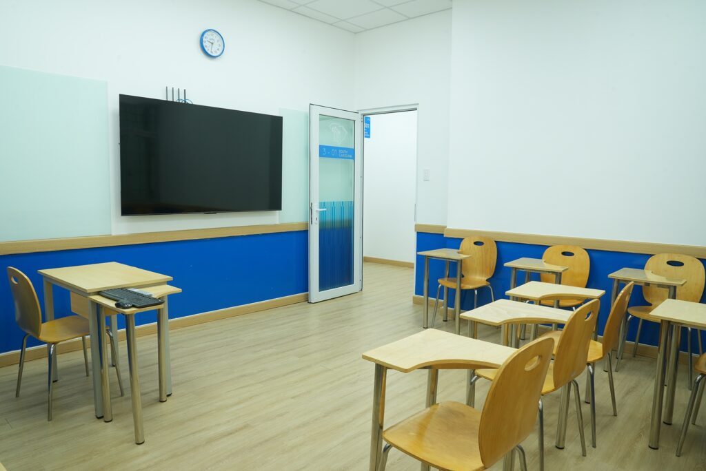 Trung Tâm Anh Ngữ YOLA luôn chú trọng đầu tư cơ sở vật chất theo tiêu chuẩn đào tạo quốc tế nhằm mang đến môi trường học tập hiện đại, tiện nghi và giàu cảm hứng cho học viên. Hệ thống hơn 140 phòng học tại 12 trung tâm được quy hoạch khoa học, đảm bảo diện tích trung bình tối thiểu 2,5 m² cho mỗi học viên. Nhờ đó, lớp học luôn thông thoáng, tạo điều kiện để học sinh dễ dàng tập trung, tương tác và tham gia các hoạt động học tập một cách hiệu quả.Mỗi phòng học đều được trang bị đầy đủ thiết bị phục vụ giảng dạy như tivi, máy tính hỗ trợ bài giảng, bàn ghế đạt chuẩn, hệ thống ánh sáng phù hợp cùng máy lạnh, mang lại không gian học tập thoải mái và chuyên nghiệp. Bên cạnh đó, trung tâm còn sở hữu phòng Speaking Lab được trang bị máy tính hiện đại để học viên thực hiện các bài kiểm tra và đánh giá năng lực, giúp theo dõi tiến trình học tập một cách rõ ràng và khoa học. Khu vực pantry được thiết kế như một không gian thư giãn nhẹ nhàng, giúp học viên nghỉ ngơi và tái tạo năng lượng giữa các giờ học.