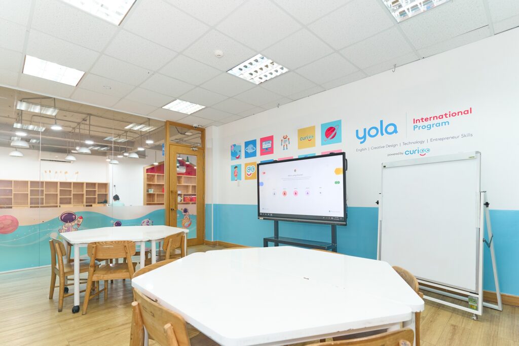 Ngoài ra, hệ thống giáo cụ học tập tại YOLA cũng được chuẩn bị đa dạng với bảng, bút lông và nhiều dụng cụ hỗ trợ cho các hoạt động tương tác, trò chơi ngôn ngữ trên lớp. Nhờ vậy, mỗi buổi học không chỉ là tiếp thu kiến thức mà còn là trải nghiệm học tập sinh động, giúp học viên ghi nhớ lâu hơn và tự tin ứng dụng tiếng Anh trong thực tế. Tất cả tạo nên một môi trường học tập chuyên nghiệp và truyền cảm hứng, nơi học viên có thể an tâm rèn luyện và phát triển năng lực tiếng Anh một cách bền vững.