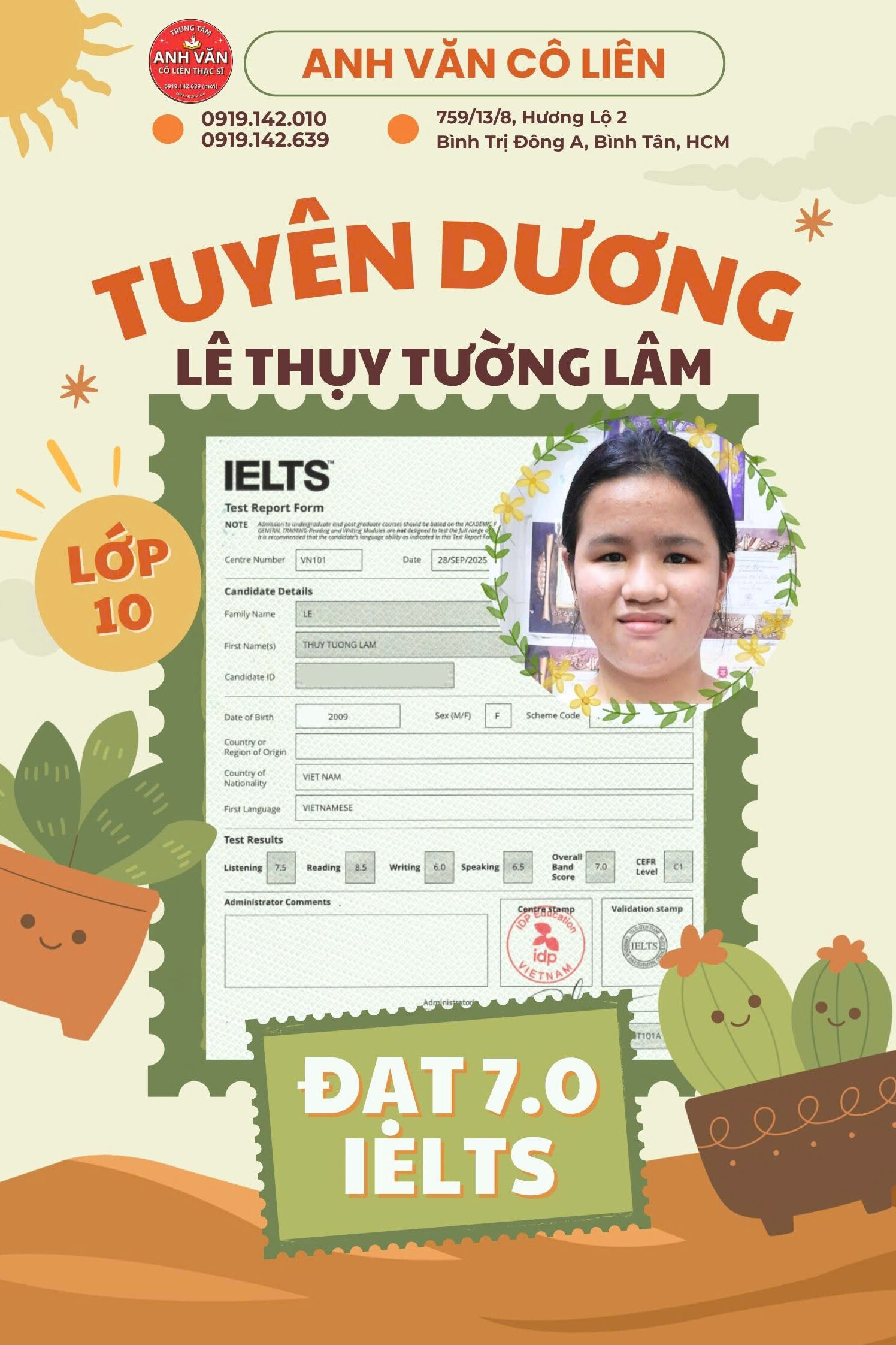 Thông tin liên hệ Trung Tâm Anh Văn Cô Liên Thạc Sĩ Bình Tân