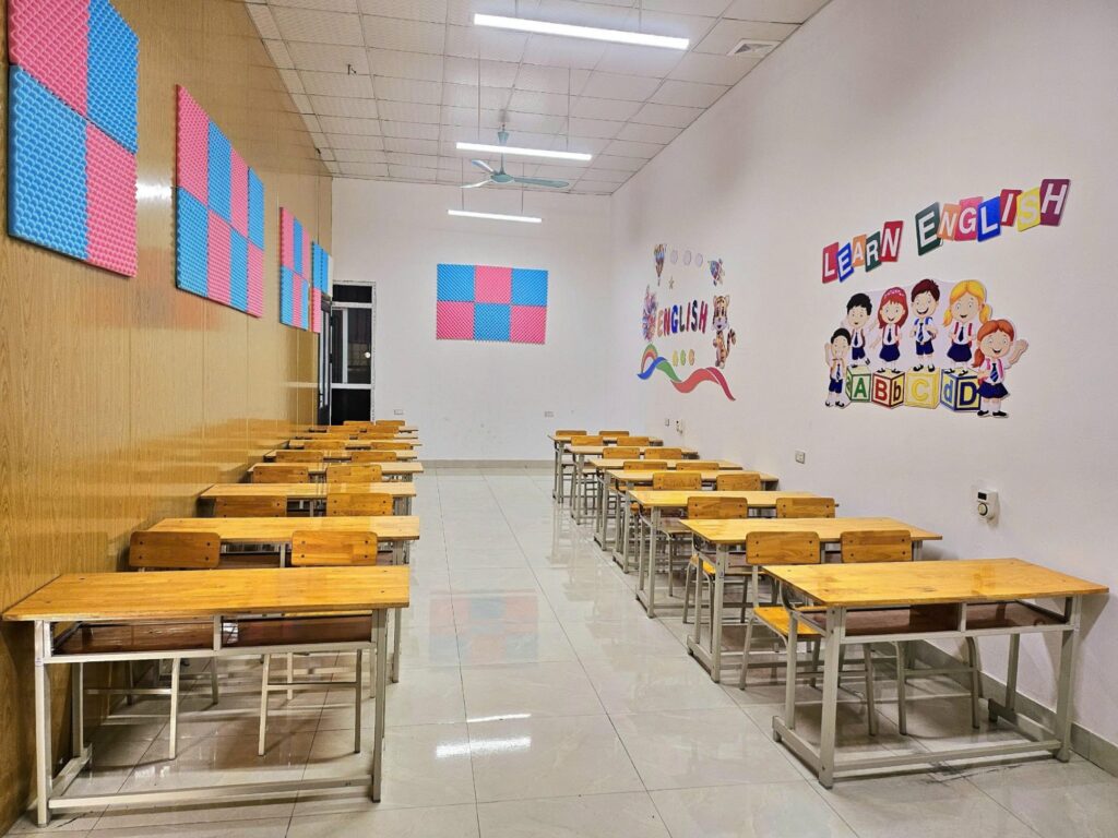 Tại Trung Tâm Ngoại Ngữ Kết Nối – Lạc Thủy, cơ sở vật chất được đầu tư đồng bộ và bài bản theo tiêu chuẩn đào tạo quốc tế, nhằm mang đến cho học viên một môi trường học tập hiện đại, an toàn và đầy cảm hứng. Mỗi không gian, mỗi trang thiết bị đều được thiết kế với mục tiêu hỗ trợ tối đa việc tiếp thu kiến thức, nâng cao trải nghiệm và thúc đẩy sự tự tin trong quá trình rèn luyện Anh ngữ.