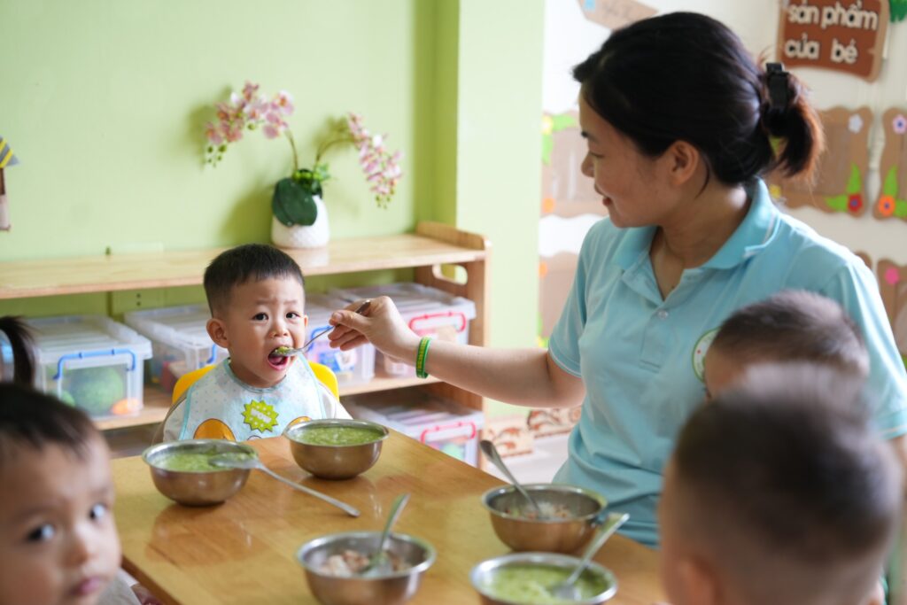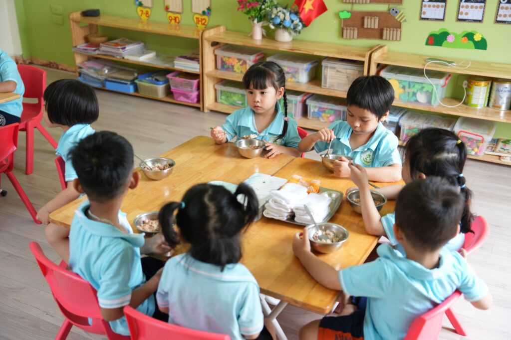 Tại Trường Mầm non Ngôi Sao Xanh – Lĩnh Nam, dinh dưỡng là nền tảng quan trọng cho sự phát triển toàn diện của trẻ nhỏ. Vì vậy, chế độ ăn uống của trẻ luôn được xây dựng một cách khoa học, tuân thủ nghiêm ngặt các quy định về an toàn vệ sinh thực phẩm và tiêu chuẩn dinh dưỡng của ngành y tế.