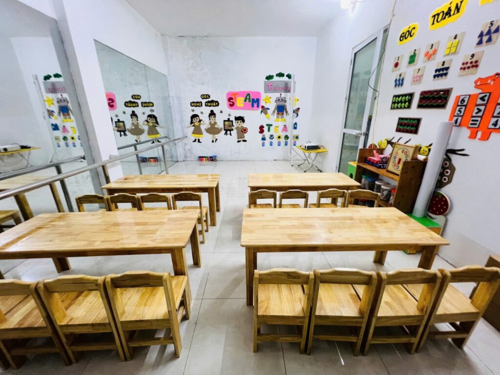 Điểm nhấn đặc biệt là phòng học STEAM hiện đại, nơi các con được thử nghiệm, sáng tạo và học hỏi thông qua các hoạt động khám phá khoa học, nghệ thuật. Ngoài ra, sân chơi ngoài trời rộng rãi và khu vui chơi trong nhà luôn sẵn sàng cho những giờ phút vận động vui vẻ.