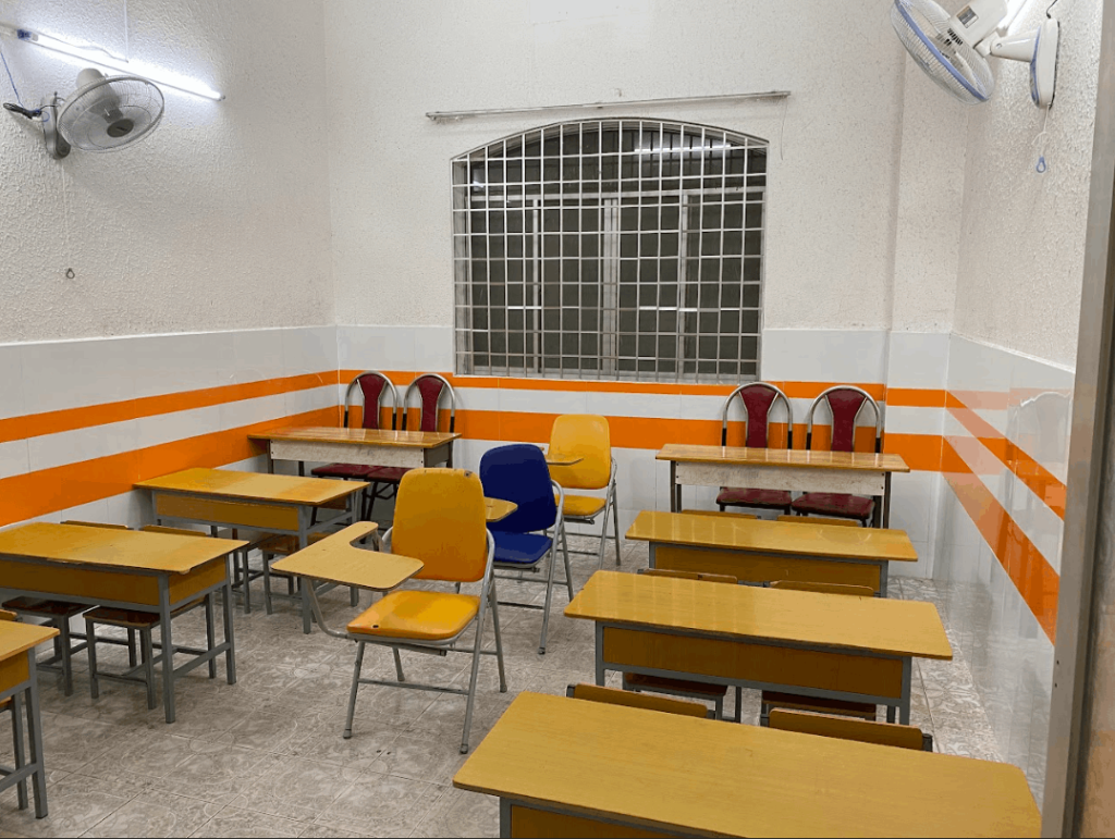 Trung tâm sở hữu gần 20 phòng học tiêu chuẩn, mỗi phòng rộng rãi, thoáng mát khoảng 20m², được trang bị đầy đủ máy lạnh, màn hình chiếu, ti vi, máy tính và bàn ghế phù hợp với lứa tuổi học sinh. Hệ thống ánh sáng dịu, âm thanh trong trẻo, cách âm tốt đảm bảo chất lượng giảng dạy và khả năng tập trung cao nhất cho học sinh.