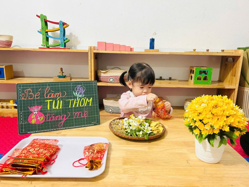 • Phát triển tư duy toán học: Các giáo cụ Montessori trực quan giúp trẻ tiếp cận khái niệm số, hình học, quy luật một cách tự nhiên, hình thành tư duy logic ngay từ sớm.