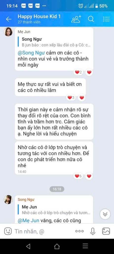 Feedback của phụ huynh