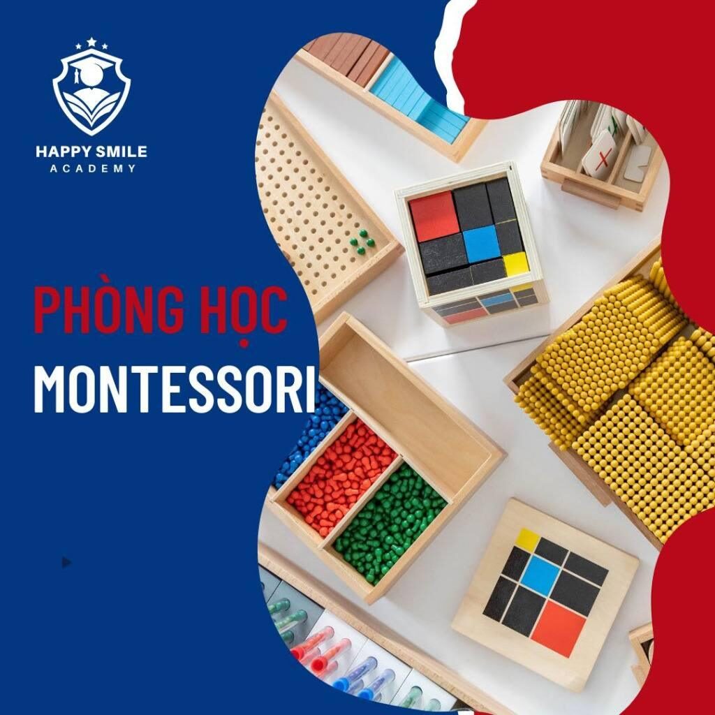 Các phòng học tại Happy Smile Academy được thiết kế rộng rãi, thoáng mát, tràn ngập ánh sáng tự nhiên, mang lại cho trẻ cảm giác thoải mái và gần gũi. Mỗi lớp học được trang bị đầy đủ học cụ hiện đại, giáo cụ Montessori cùng đồ dùng học tập phong phú, phù hợp với từng độ tuổi và phương pháp giảng dạy, giúp trẻ học tập và khám phá hiệu quả hơn.