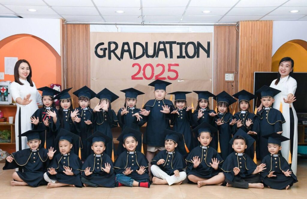 Các thầy cô không chỉ vững vàng chuyên môn mà còn giàu tình yêu thương, luôn thấu hiểu và tôn trọng sự khác biệt của từng bé. Tất cả giáo viên đều được đào tạo bài bản tại các trường cao đẳng, đại học sư phạm mầm non uy tín, thường xuyên tham gia bồi dưỡng và cập nhật các phương pháp giáo dục hiện đại như Montessori, STEAM, GrapeSEED…